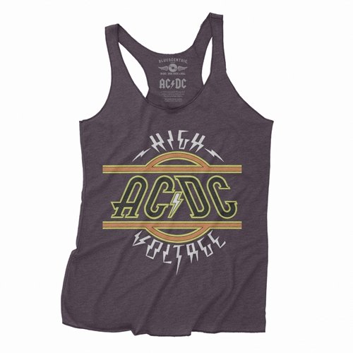 The Bluescentric Brand Backstage AC/DC Racerback Tank is available in comfortable, relaxed-fit women's sizes up to 2XL. The material is premium fabric-laundered 4.2oz triblend 50/25/25 polyester/combed ringspun cotton/rayon with a racer back.