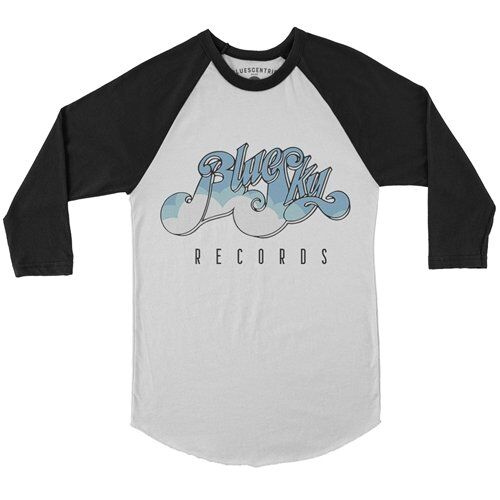 The official Blue Sky Records raglan baseball shirt comes in comfortable, lightweight 4oz 91/9 poly/ringspun cotton sizes up to 2XL.