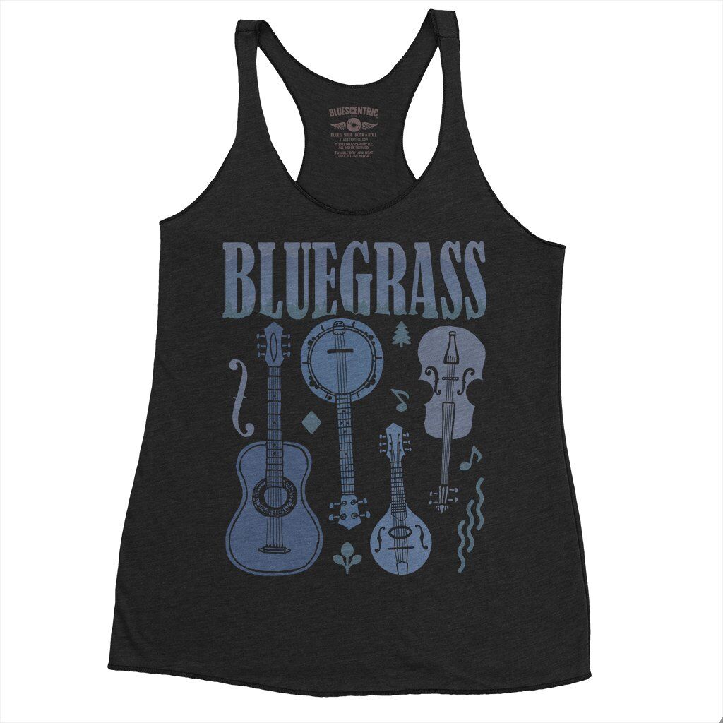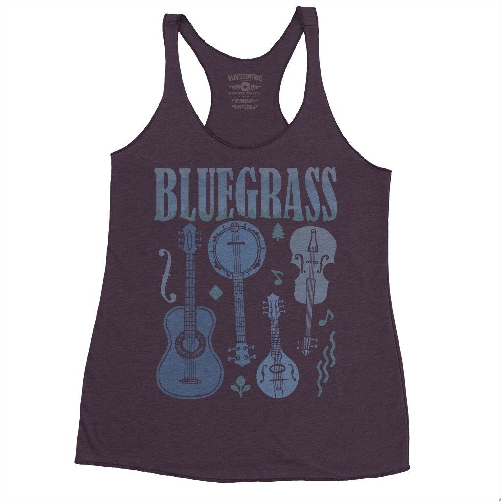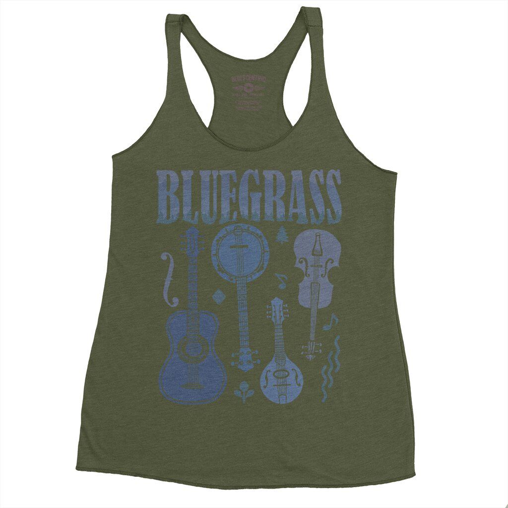 This bluegrass music shirt design features various hand drawn instruments and a nice smokey mountain motiff.