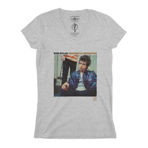 This is a Bluescentric Brand official Bob Dylan ladies v-neck t shirt, available in 4.2oz 100% airlume combed & ringspun cotton sizes up to 2XL! Athletic heather is 90/10. V-Necks are side-seamed with a set-in coverstitched v-neck.