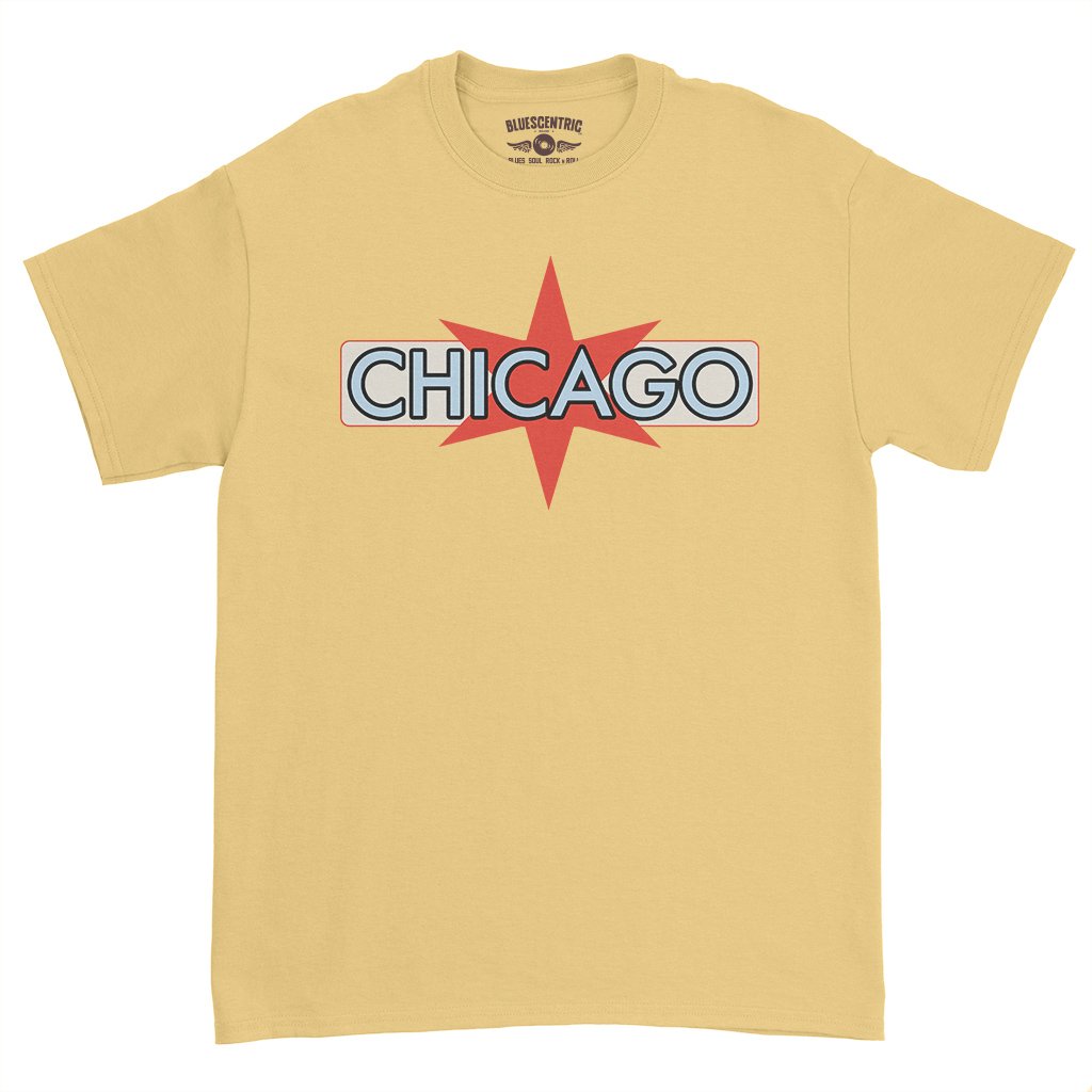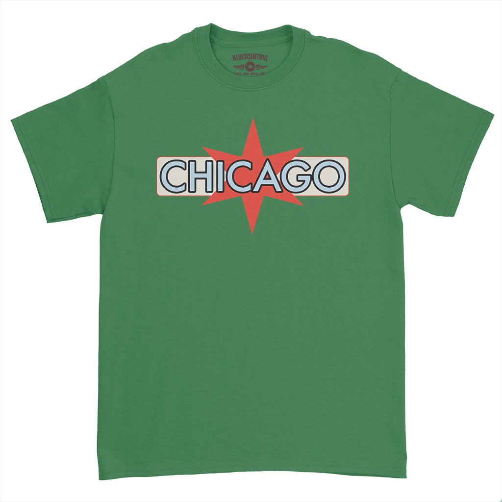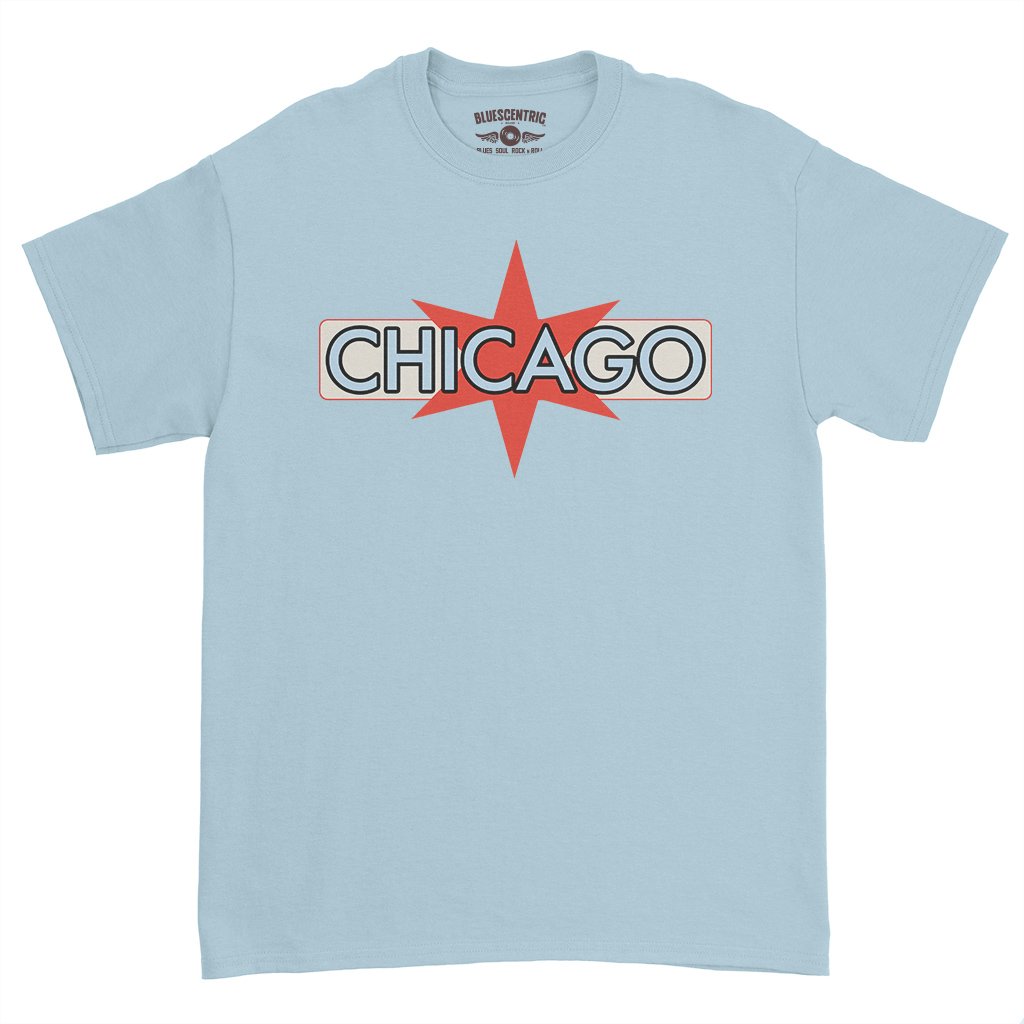 This shirt design honors the city of Chicago, the star and coloring is from the Chicago flag.