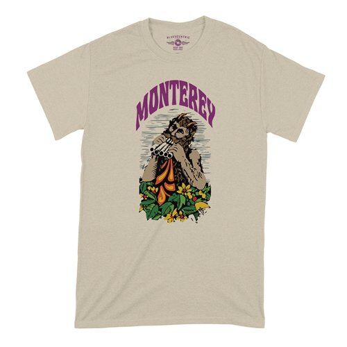 The design features a colorful artistic representation of Monterey Pop's mascot, Pan, the renown fictional flutist.