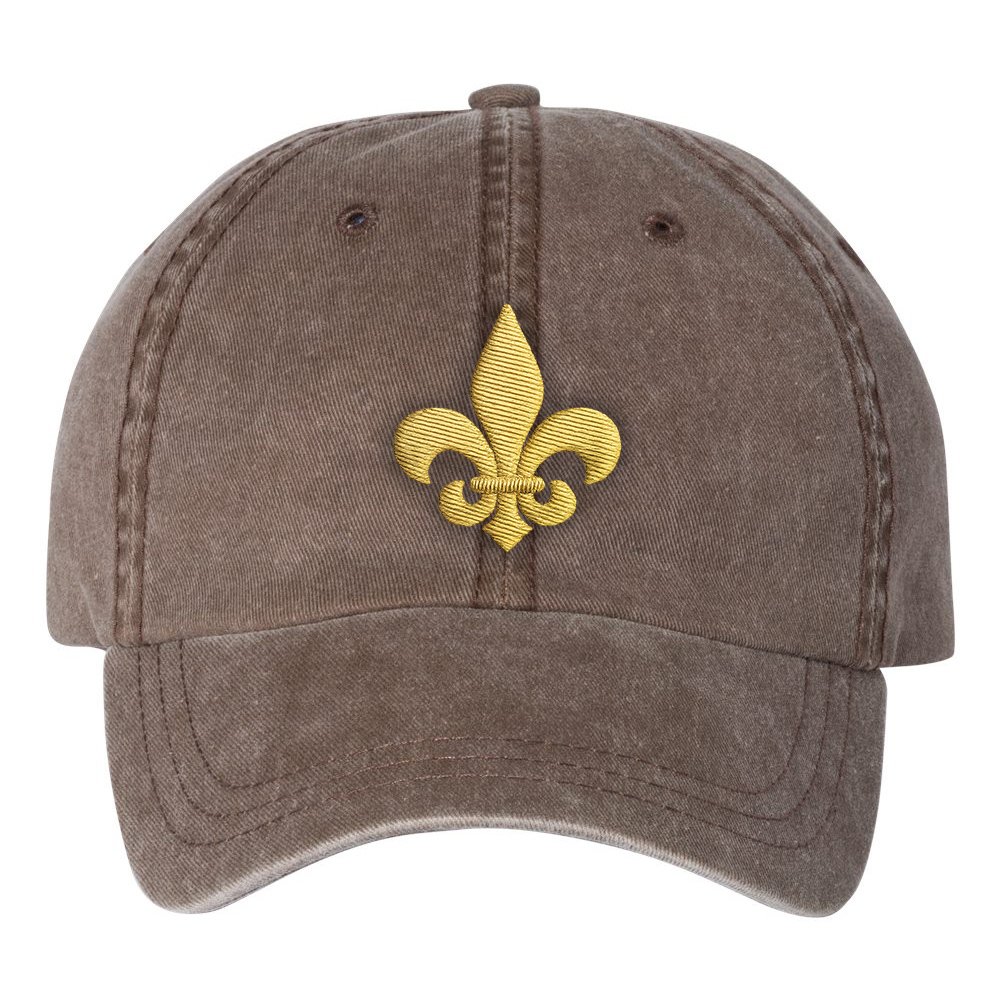 This hat features a classic fleur-de-lis design. You can find it in several varieties of New Orleans colors of gold, green and purple! The fleur-de-lis is one of the most recognizable symbols of New Orleans, rooted in the city’s French heritage and woven into the Crescent City's culture.