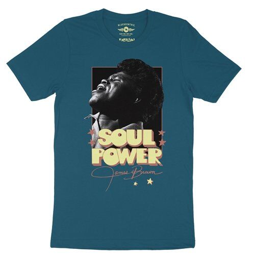 This design features a photo of James Brown singing with the words "SOUL POWER" and Brown's signature. The vintage "Soul Power" logo and coloring comes from the cover of the original album "Soul Power Part 1 & 2".
