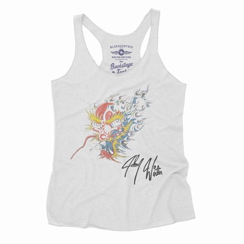 The Bluescentric Brand Johnny Winter Screamin Demon Backstage Racerback Tank is a premium Next Level brand fabric-laundered 4.2oz triblend 50/25/25 polyester/combed ringspun cotton/rayon racerback tee.
