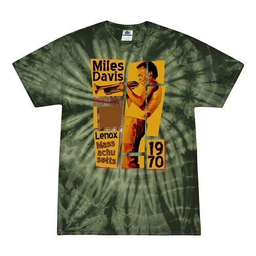 This apparel design features Miles Davis performing at Tanglewood Music Festival in Lennox, Massachusetts in 1970