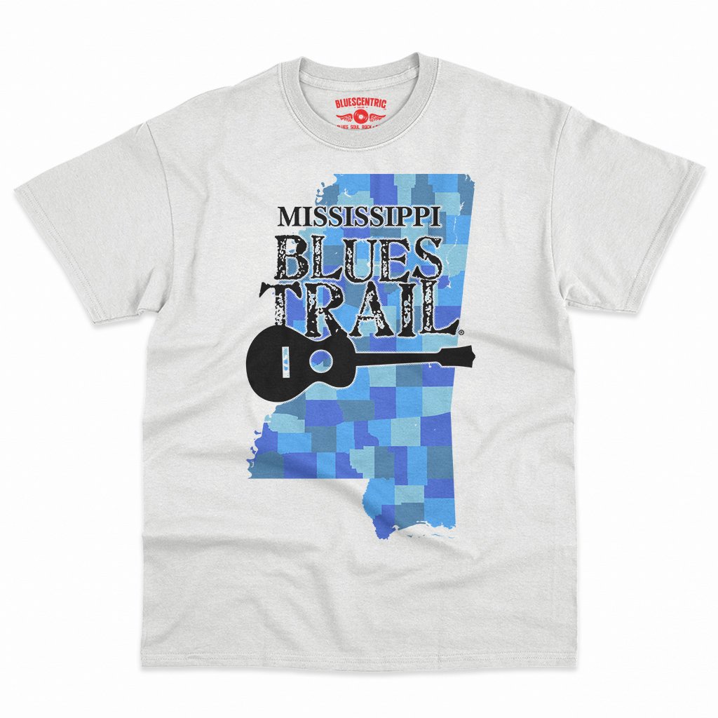 Celebrate Mississippi and the Blues Trail with this exclusive design that showcases a patchwork of blues across Mississippi's counties