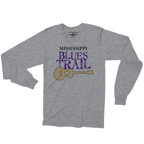 Bluescentric Brand carries premium Mississippi Blues Trail Long Sleeve T-Shirts in sizes up to 5XL. This is a pre-shrunk 6oz 100% heavy cotton (athletic heather 99%) long sleeve tee. Double-needle sleeve and bottom hem.