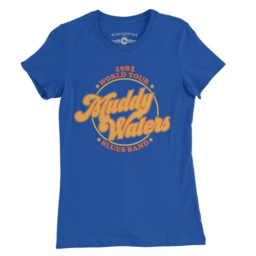Pick up this official vintage Muddy Waters Blues Band World Tour 1981 Ladies T-Shirt. Every sale benefits Muddy's estate because Bluescentric cares about the music.