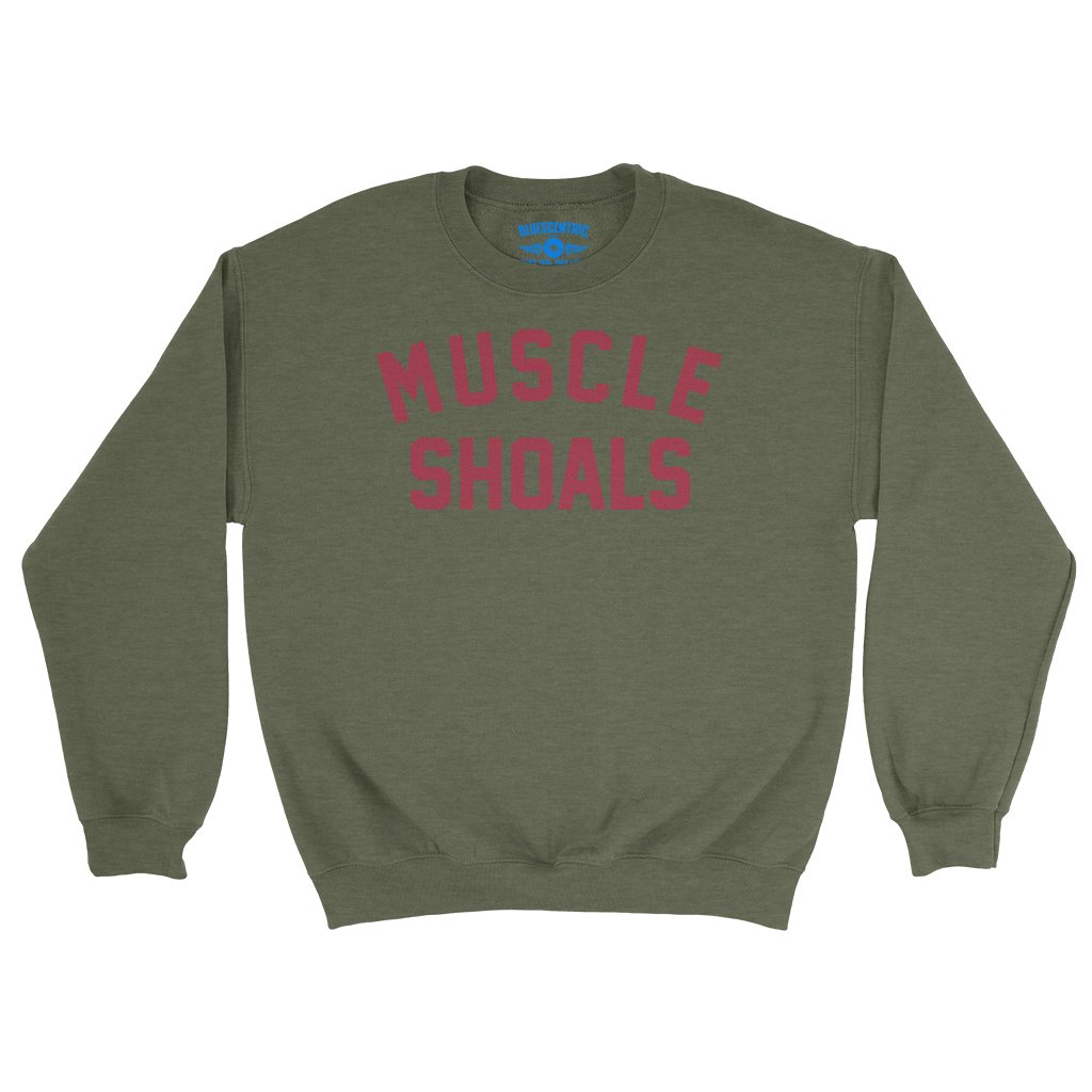 This music t-shirt reads "Muscle Shoals". Muscle Shoals, Alabama became a cornerstone of American music by blending Southern soul, blues, R&B, and rock into a sound that felt both raw and timeless. Through studios like FAME Studios and Muscle Shoals Sound Studio, local session players helped shape landmark recordings by artists ranging from Aretha Franklin to the Rolling Stones.