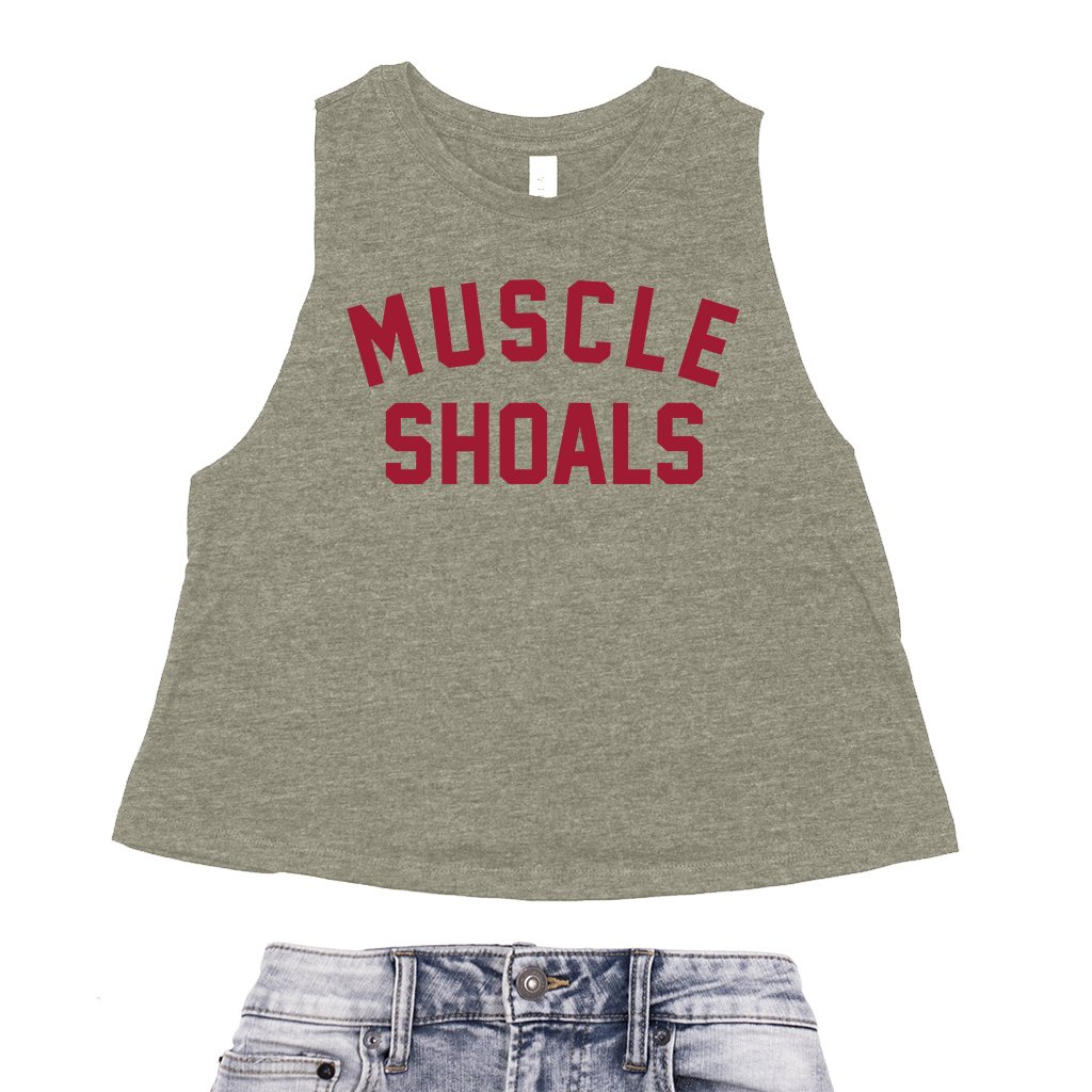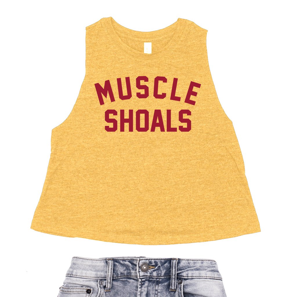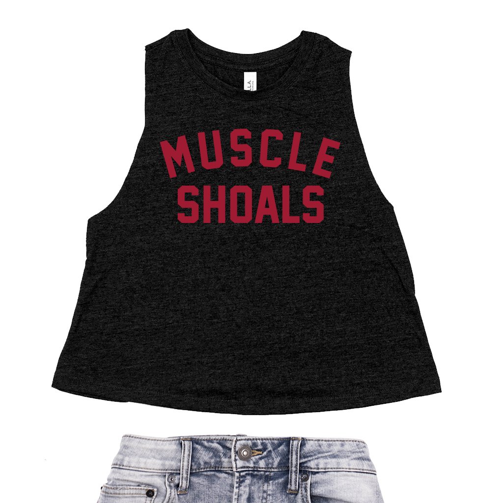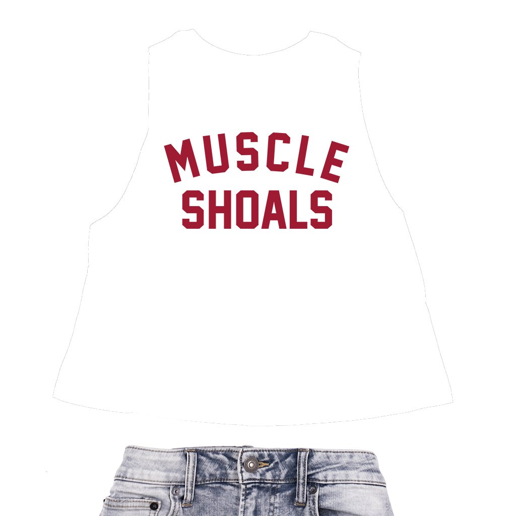 This music t-shirt reads "Muscle Shoals". Muscle Shoals, Alabama became a cornerstone of American music by blending Southern soul, blues, R&B, and rock into a sound that felt both raw and timeless. Through studios like FAME Studios and Muscle Shoals Sound Studio, local session players helped shape landmark recordings by artists ranging from Aretha Franklin to the Rolling Stones.