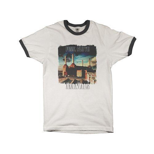 This is a 4.3 oz 100% combed ringspun cotton fine jersey Bluescentric brand Pink Floyd ringer t shirt. It features side seams and contrasting 1x1 baby rib binded collar and sleeves. The t-shirt features the band's tenth album, Animals.