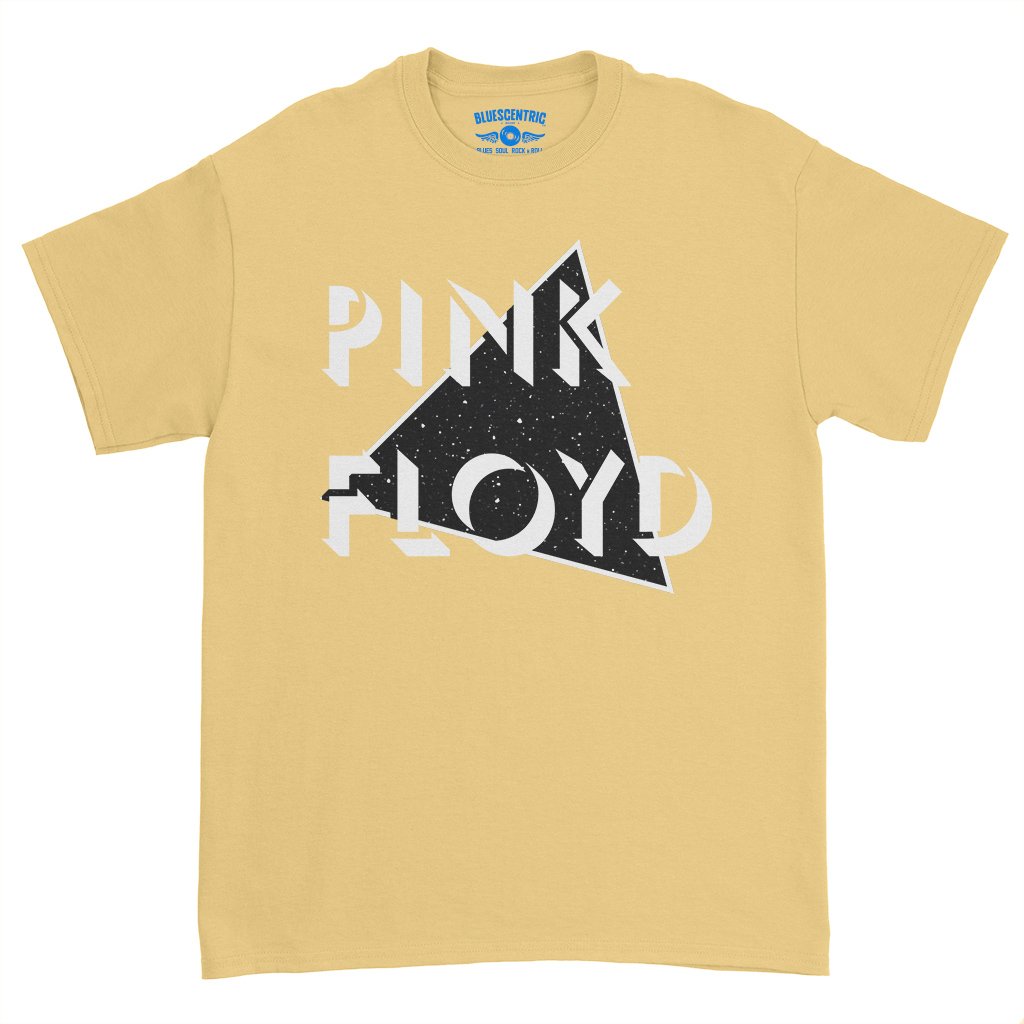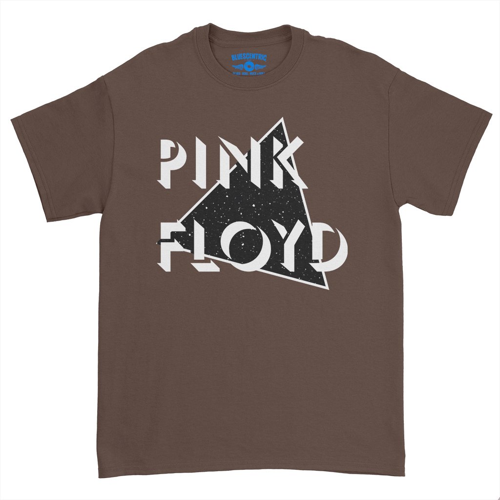 This official Pink Floyd shirt features a classic Floyd logo overlayed in a triangular portal to space and stars. The design says "Pink Floyd".
