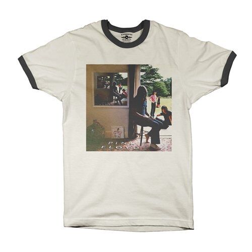 This is a 4.3 oz 100% combed ringspun cotton fine jersey Bluescentric brand official Pink Floyd ringer t shirt. It features side seams and contrasting 1x1 baby rib binded collar and sleeves.