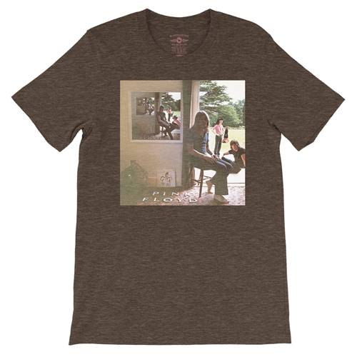 This t-shirt features the trippy cover of Pink Floyd's fourth album, Ummagumma, originally released in 1969. This artwork contains the original "Gigi" album cover, which was airbrushed out in many countries, including the United States.