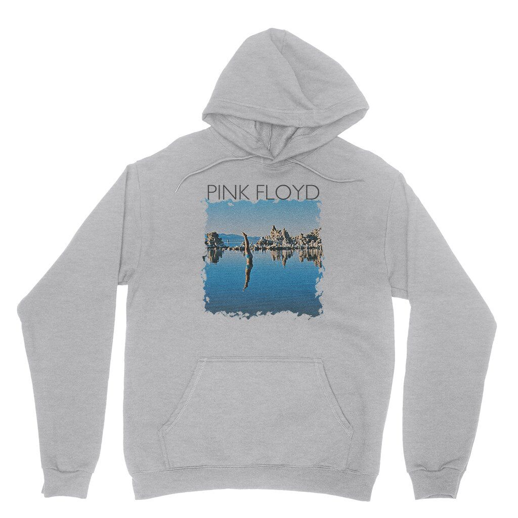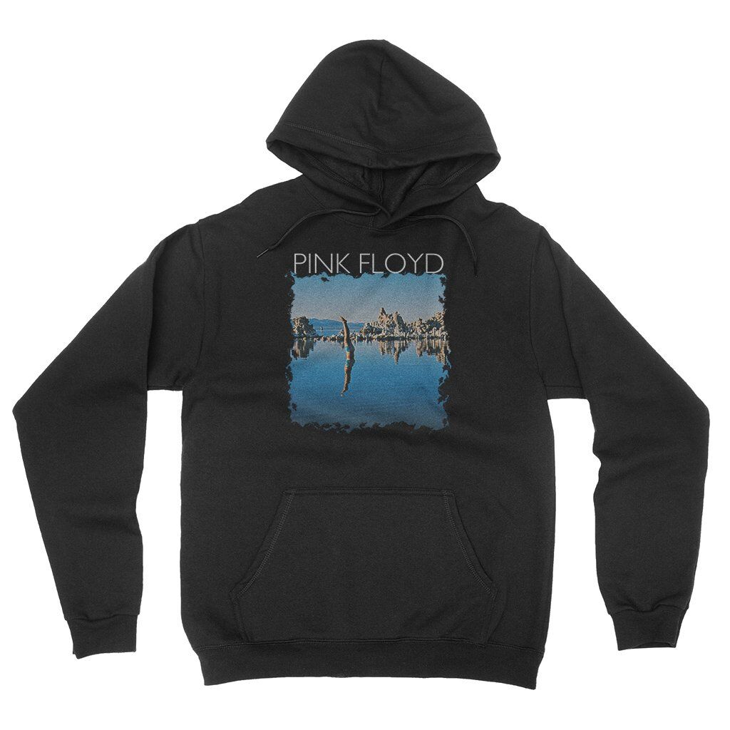 This official Pink Floyd shirt features a striking photo from the inside of Pink Floyd's Wish You Were Here album cover. It features a diver midway through diving ito a lake, but making no splash. The scene with the surreal rocky backdrop was shot in Mono Lake, California, which was an ancient saline lake with unique and strange limestone formations. The design also features the Pink Floyd logo used during the Wish You Were Here period.