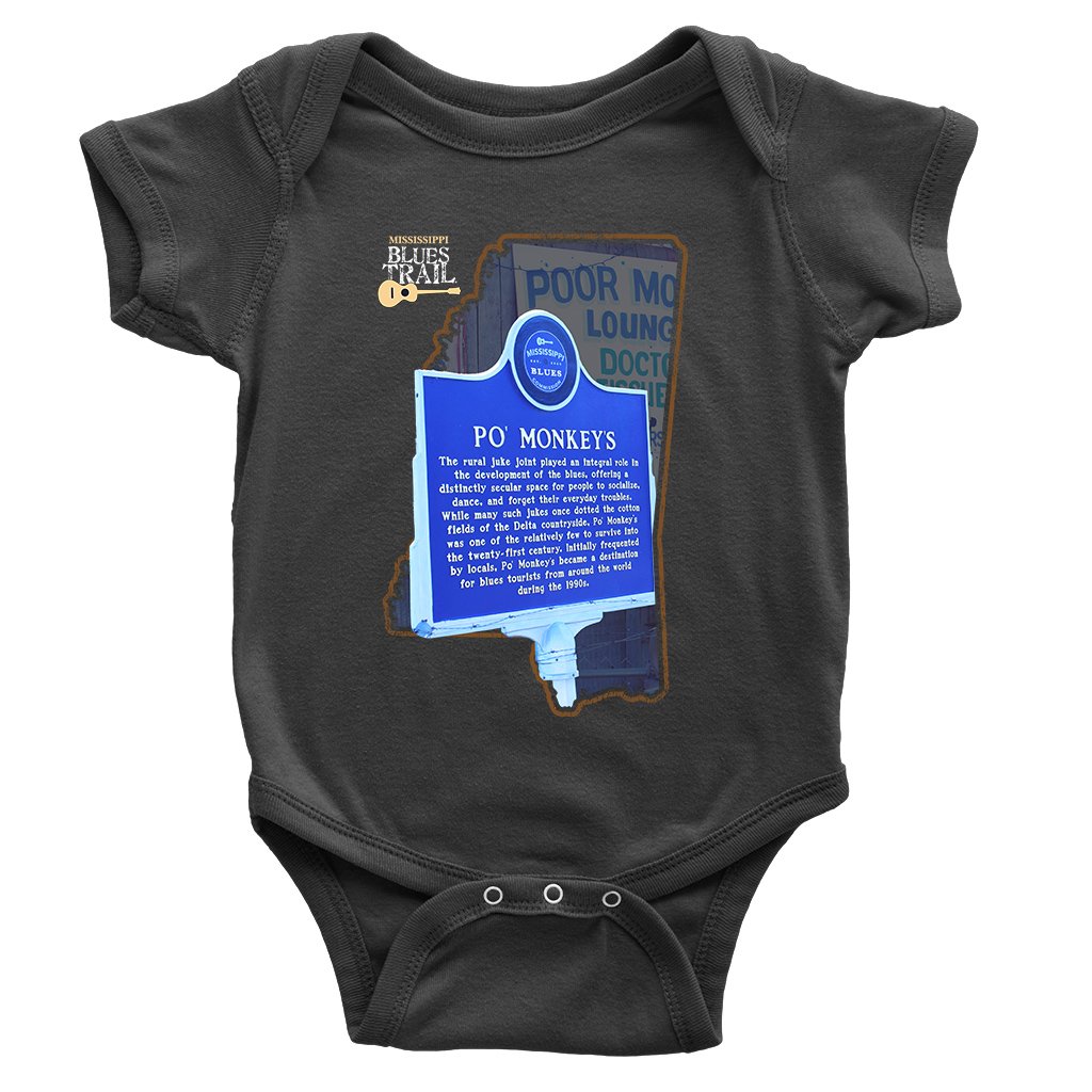 This official Mississippi Blues Trail shirt features a real photo of the Po’ Monkey’s Mississippi Blues Trail Marker, framed in the state of Mississippi, with the Mississippi Blues Logo at the top. The marker is located in Merigold, Mississippi, and commemorates the iconic juke joint known for its role in preserving late-night Delta blues traditions. The site was added to the Mississippi Blues Trail in 2010.