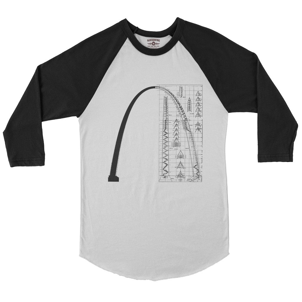 This design features the original architectural drawing of the Saint Louis Arch from the Library of Congress.