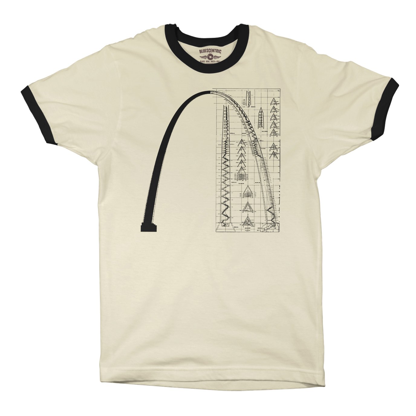 This design features the original architectural drawing of the Saint Louis Arch from the Library of Congress.