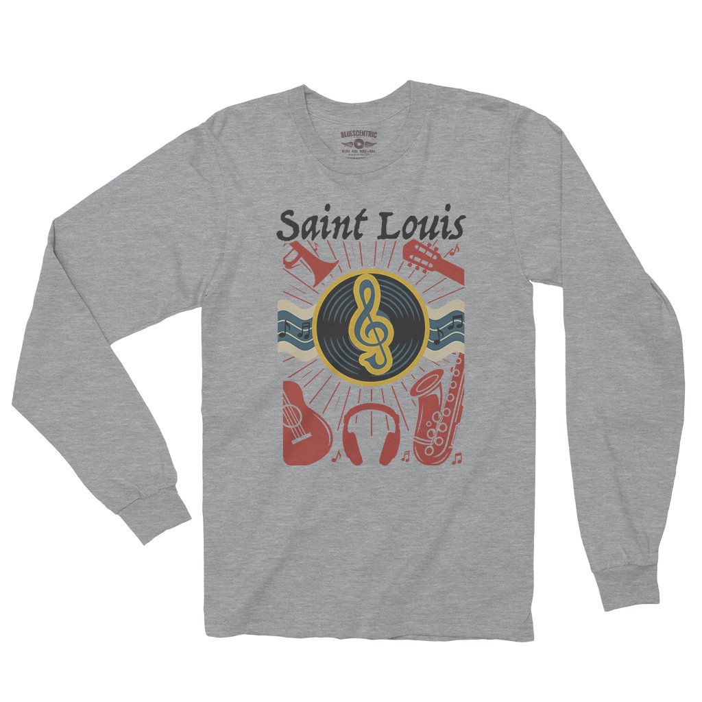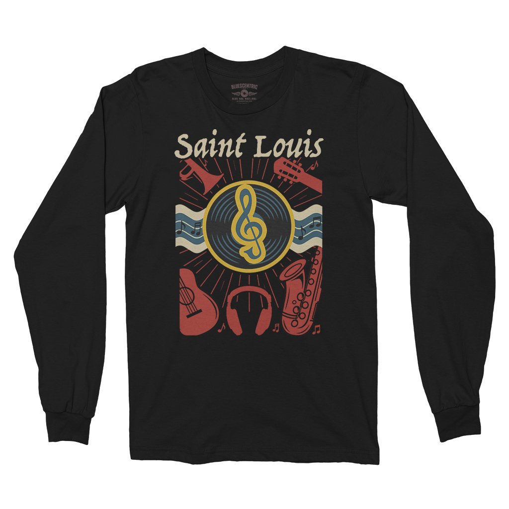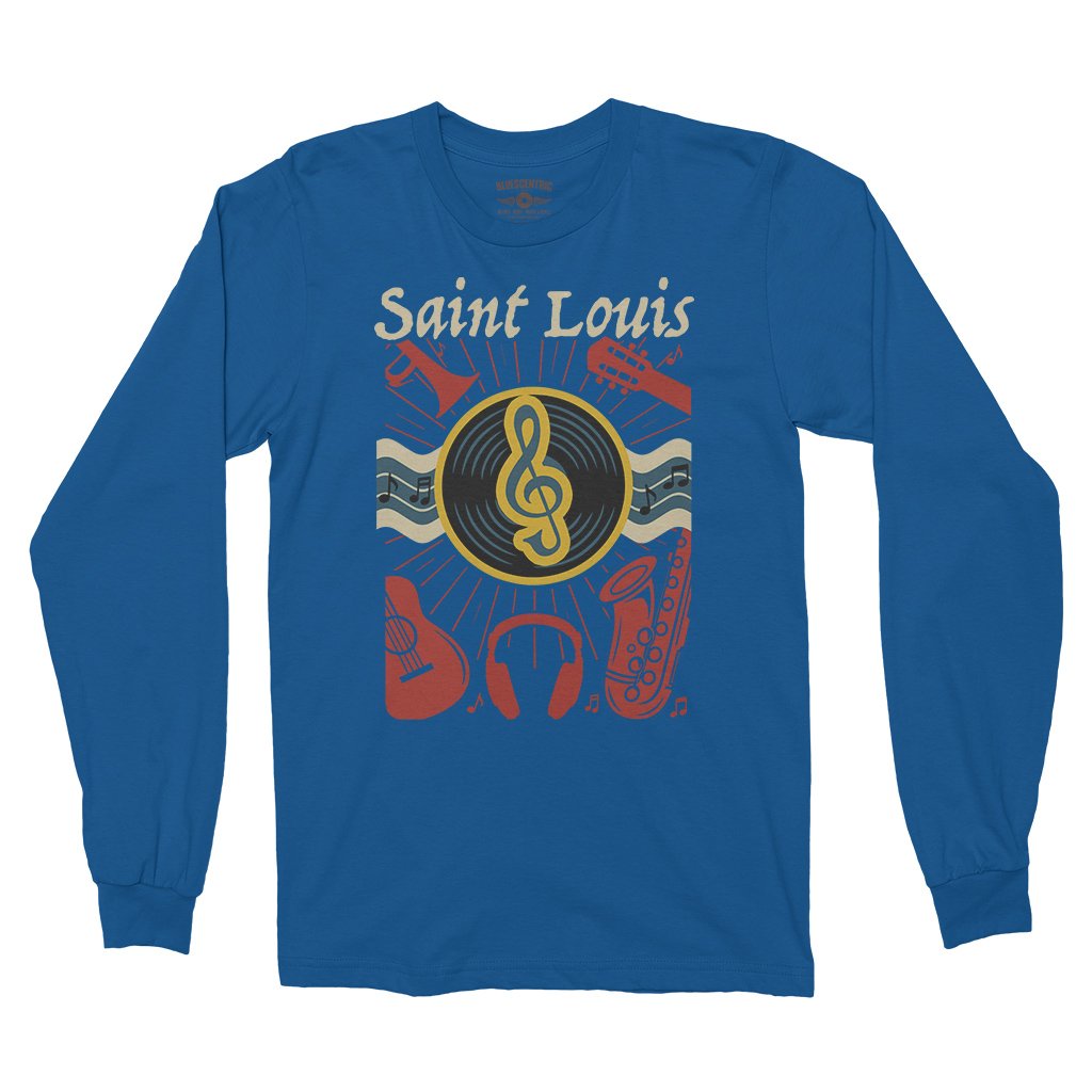 Celebrate the soul of Saint Louis with this musical design that features a variety of musical elements, and classic styles and colors of the STL flag.