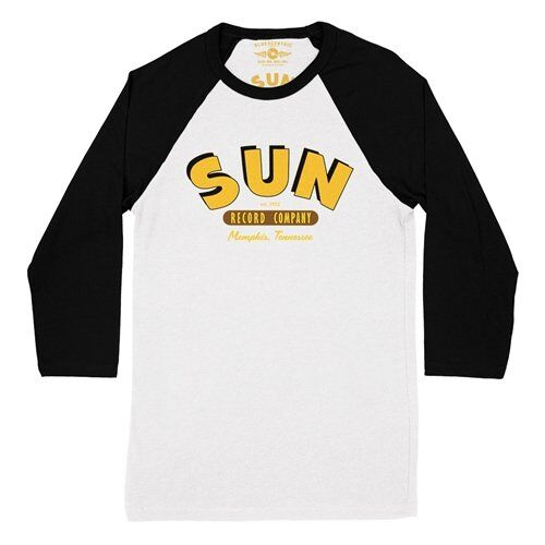 This is a Bluescentric Brand authentic Sun Records baseball tee, available in comfortable sizes up to 2XL. The material is lightweight 4oz 91/9 poly/ringspun cotton with 3/4 length sleeves.