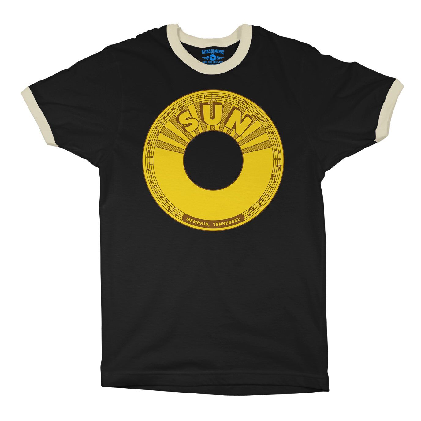 There's little doubt that rock n roll was born with Memphis' Sun Records in the mid-1950s. Sam Phillips started recording the blues, and captured the voices of new talent from the area, like Elvis Presley, Johnny Cash, Jerry Lee Lewis and Carl Perkins. The rest was rockabilly history. This band shirt design features the famous yellow Sun Records logo, and it says "Where Rock n Roll was Born" and the year of Sun's founding, 1952. The bottom reads "Memphis, Tennessee".