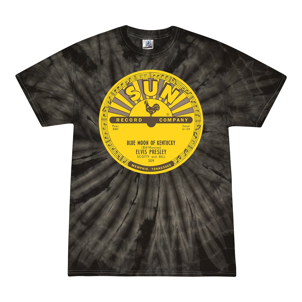 This shirt features the original Sun Records center label from Elvis Presley’s groundbreaking 1954 release of Blue Moon of Kentucky, the flip side to his debut single That’s All Right. It’s a retro nod to the moment Elvis Presley's rock ’n’ roll first sparked to life in Memphis, the elvis shirt design looks exactly like the label on that first vinyl pressing.