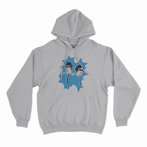 Only available through Bluescentric, this official Blues Brothers hoodie is available in sizes up to 3XL. The material is quality 90% cotton/10% poly high-density cotton jersey-lined pullover with dye-matched drawstring. Light Steel is 85% cotton. Sizes are available in Small-3XL and run true.
