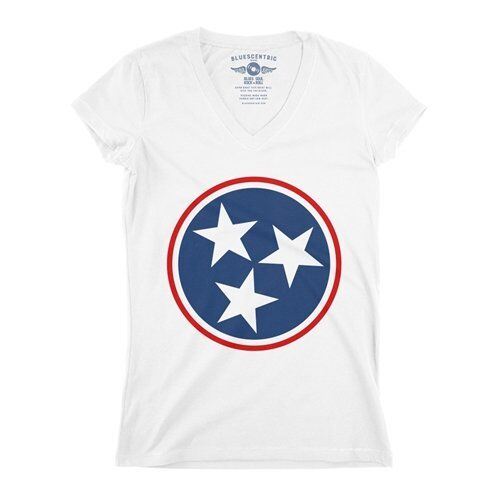 This is a Bluescentric Brand Tennessee ladies v-neck t shirt, available in 4.2oz 100% airlume combed & ringspun cotton sizes up to 2XL! Athletic heather is 90/10. V-Necks are side-seamed with a set-in coverstitched v-neck.