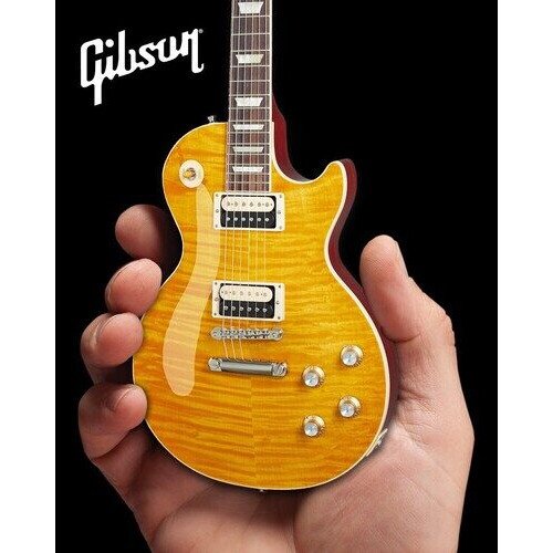 OverviewSlash Guns N Roses Ltd Edition Appetite Burst Gibson Les Paul Standard Mini Guitar Replica Collectible.This miniature replica model honors the Holy Grail of electric guitars.The stain on this handcrafted collectible is an amazing reproduction of the original solid body instrument.FeaturesBrand: Axe HeavenSize: Each guitar model is approximately 10” in length.Each AXE HEAVEN® ornamental replica guitar is 1:4 scale and is individually handcrafted from solid wood, with metal tuning keys.Includes a high-quality miniature adjustable A-frame guitar stand for display.Packed in an AXE HEAVEN® guitar case gift box.All mini guitars are packed in the same style box measuring 11.75″ W x 4.5″ D x 1.25″ HAXE HEAVEN® Miniature Replica guitars look great but are Not playable.These ornamental miniature replica guitar collectibles make great gifts for musicians & music aficionados alike!A must for Slash and Guns N Roses fans & collectors.Weight: approximately 14 oz.Officially licensedProduct materials are sourced from Brazil & Indonesia then assembled & packaged in the USA.