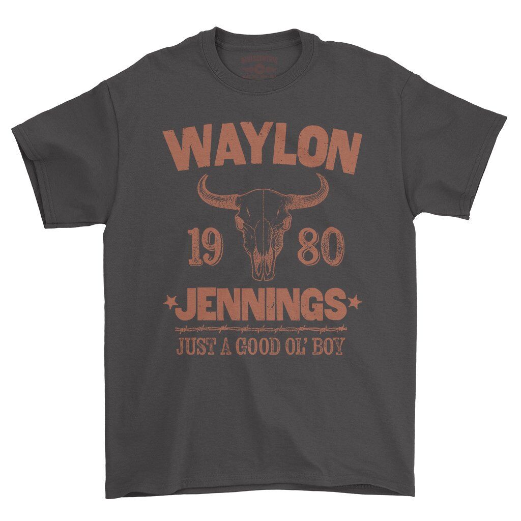 This outlaw country shirt design features Waylon Jennings, 1980 when the song was released, and "Just a Good Ol Boy".