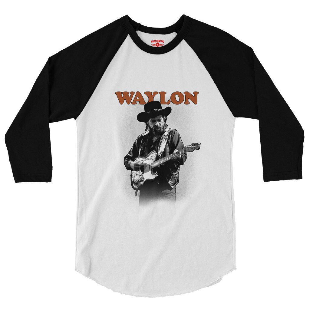 Celebrate the outlaw country legend with this official Waylon Jennings design, featuring a moody black-and-white shot of Waylon locked into his Telecaster, topped with his name in a bold western type.