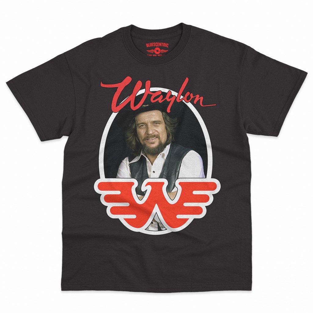 This is an official Waylon Jennings t-shirt, featuring Waylon's logo and a photo of the outlaw country great. It's the perfect shirt for Waylon Jennings fans!