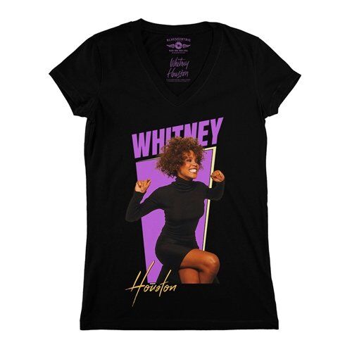 This is a Bluescentric Brand authentic Whitney Houston ladies v-neck t shirt, available in 4.2oz 100% airlume combed & ringspun cotton sizes up to 2XL! Athletic heather is 90/10. V-Necks are side-seamed with a set-in coverstitched v-neck.