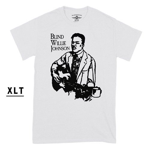 This Bluescentric Brand XLT Blind Willie Johnson t-shirt comes in preshrunk 6oz 100% cotton sizes XLT, 2XLT and 3XLT. Sizes run very true, and have minimal, if any, shrinking. This is a standard go-to t shirt for our big & tall music lovers.