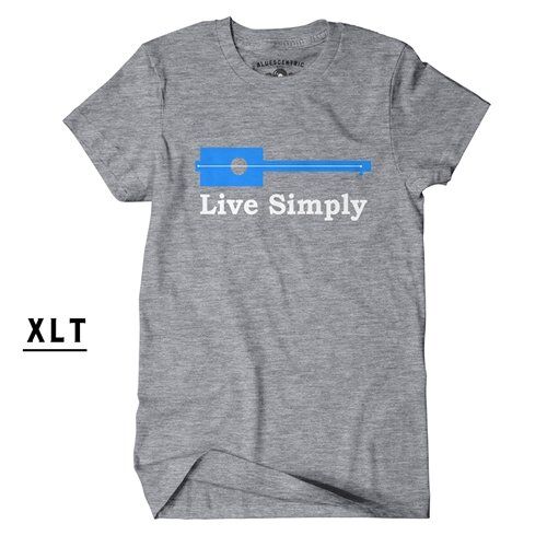 This is the special XLT version of this Live Simply Cigar Box Guitar t-shirt.